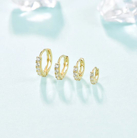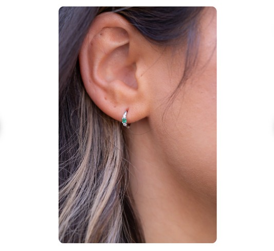 Sterling Silver 925 Emerald Gold Filled Tiny Delicate CZ Diamond Huggie Hoops Birthday Gift
