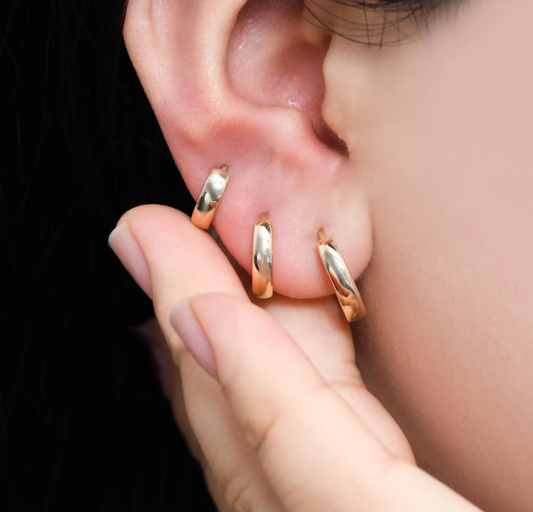 10K Solid Gold 5.0mm 6.0mm 8.0mm 10mm 12mm Chunky Hoop Earrings,Gold Huggie Earring, Daith Piercing Earring,Thick Huggie Earrings.