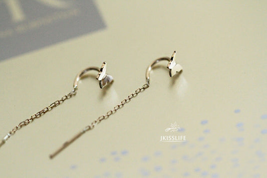 14K Solid Gold Butterfly Threader Drop Dangle Earrings