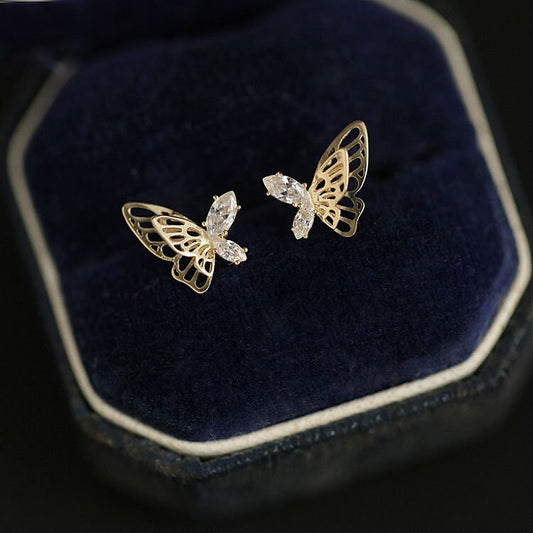14K Solid Gold Dainty Earrings, Gold Butterfly Delicate Stud Earrings, 14K real Gold Earrings, gift for her, Thanksgiving gift