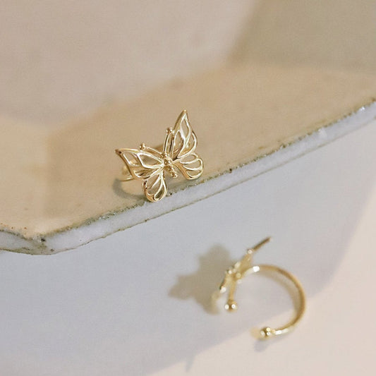 9K Solid Gold Butterfly Cuff Wrap Clip Cartilage Earring