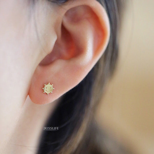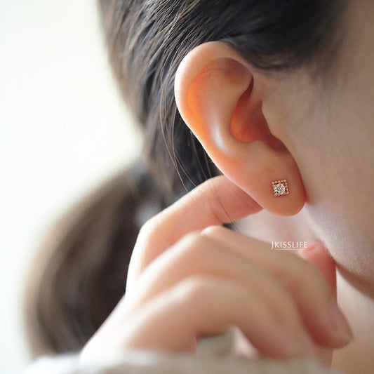9K Real Solid Gold Sparkling Dainty Screw Back Stud Earrings