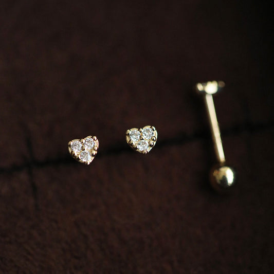 9K Solid Gold Tiny Heart Shape Stud, Dainty Screw Back Dainty Piercing Earrings, Diamond simulant Earrings, Mother's Day Gift for Her